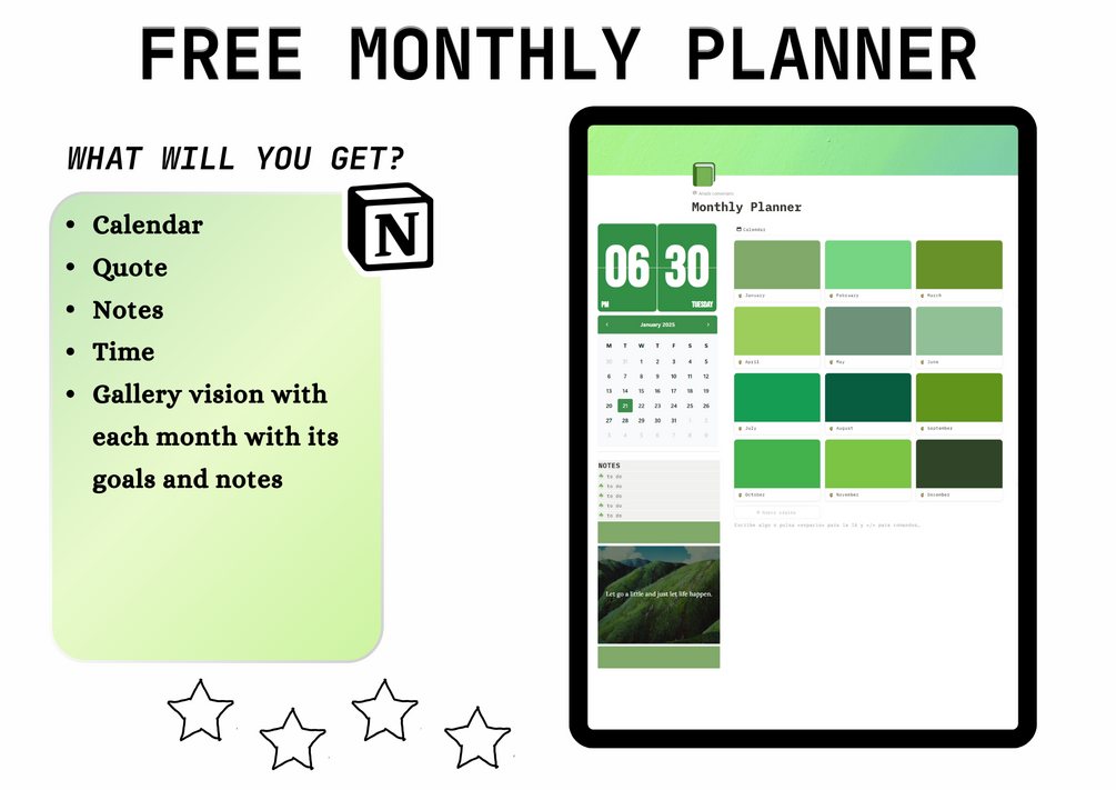 FREE MONTHLY PLANNER | NOTION TEMPLATE