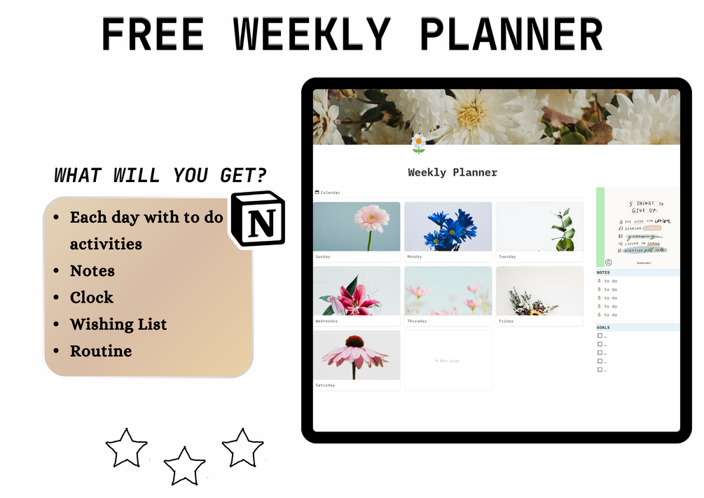 FREE WEEKLY PLANNER | SECOND VERSION | NOTION TEMPLATE