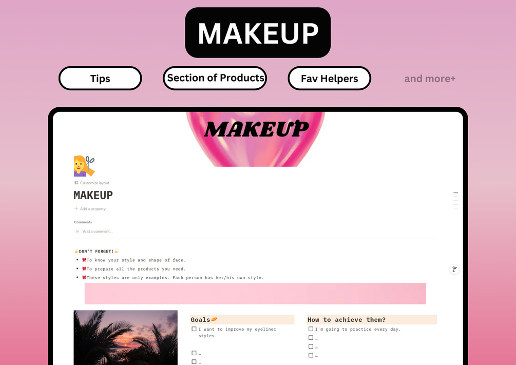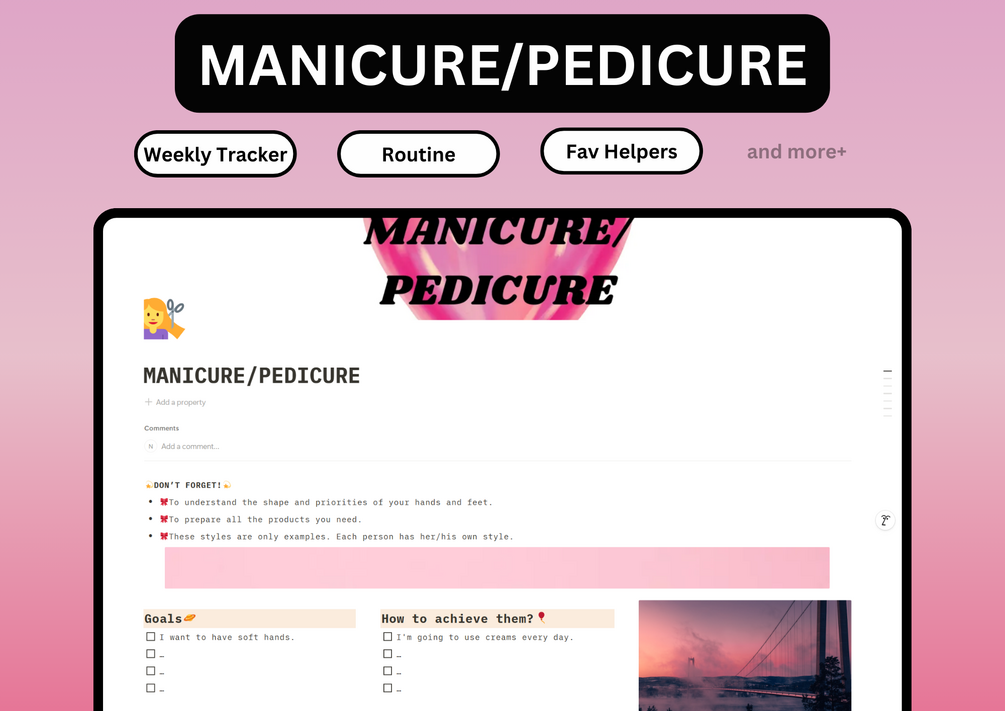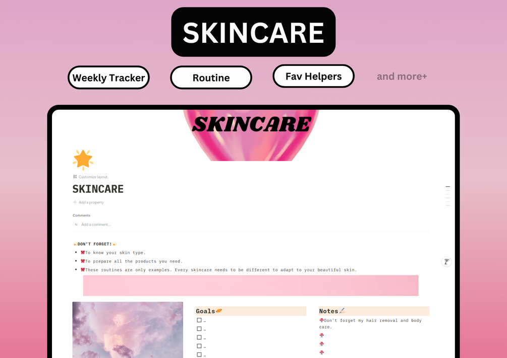 From skincare and haircare to meal planning and workouts, this all-in-one template keeps everything in one beautifully designed space, so you can focus on becoming the best version of yourself. πΈπ