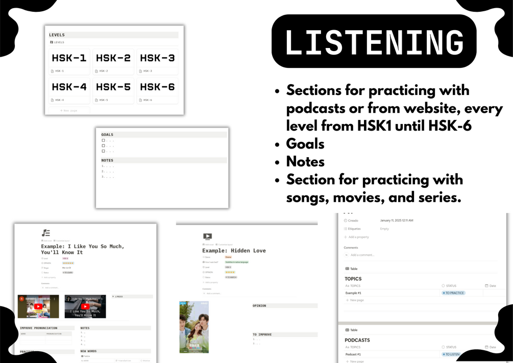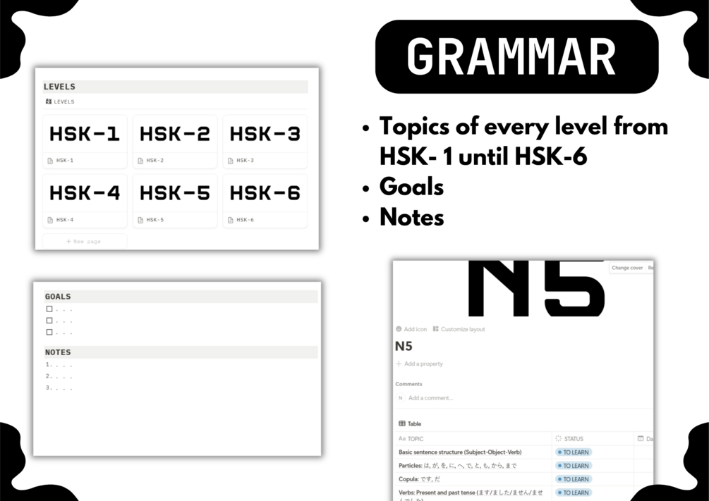 MANDARIN CHINESE LEARNING | NOTION TEMPLATE
